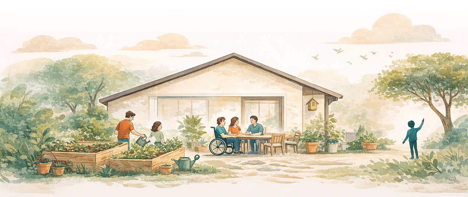 Notre projet consiste à développer un habitat inclusif, à taille humaine, permettant à plusieurs jeunes adultes en situation de handicap de vivre ensemble dans un cadre sécurisant, chaleureux et stimulant.